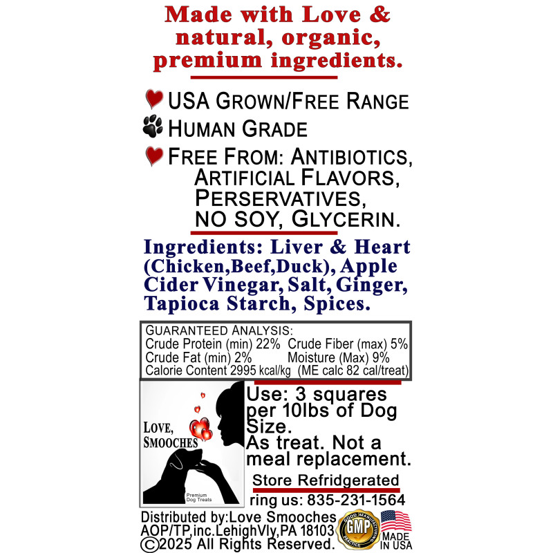 Don't forget to save your customization to be able to add to cartSample our Premium - Natural, Organic Human Grade Treats -- Designed by A Groomers Passion & Vet Science. Free From Antibiotics, artificial flavors, preservatives, soy or glycerin.